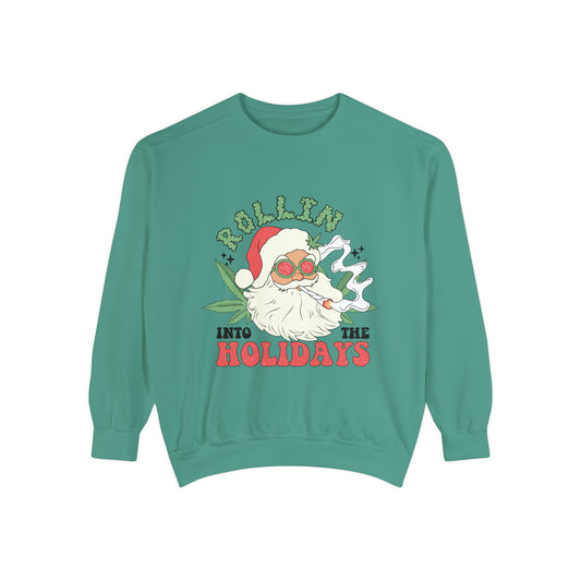 Rollin Into the Holidays Santa Unisex Garment-Dyed Sweatshirt